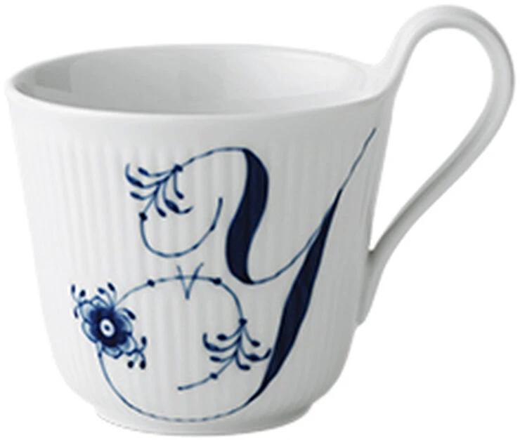 Som en elskelig navnekop, der er en ideel gave til en man har kær, fås Alfabetkrusene med en bred vifte af bogstaver, hvor nye kommer til, og selvom hvert bogstav fremstår naturligt og ubesværet, er det håndmalet på kruset med et enkelt, nøje udført penselstrøg, der skaber den smukke tykke linje og den ensartede blå farve. Royal Copenhagens Alfabetkrus giver en klassisk, blåmalet form et strejf af personlighed. Alfabetkrusene er inspireret af Royal Copenhagens første stel, Musselmalet Riflet fra 1775, og er formgivet efter den klassiske form på højhankskoppen fra 1884. Hver unikke højhankskop har et bogstav malet på den ene side og referer til stel nr. 1 på den anden. Alfabetkrusene er udover de det håndmalede bogstav dekoreret med to palmetter, som er et klassisk element fra flere Royal Copenhagen stel. • Håndlavet og håndmalet • Unik gaveidé