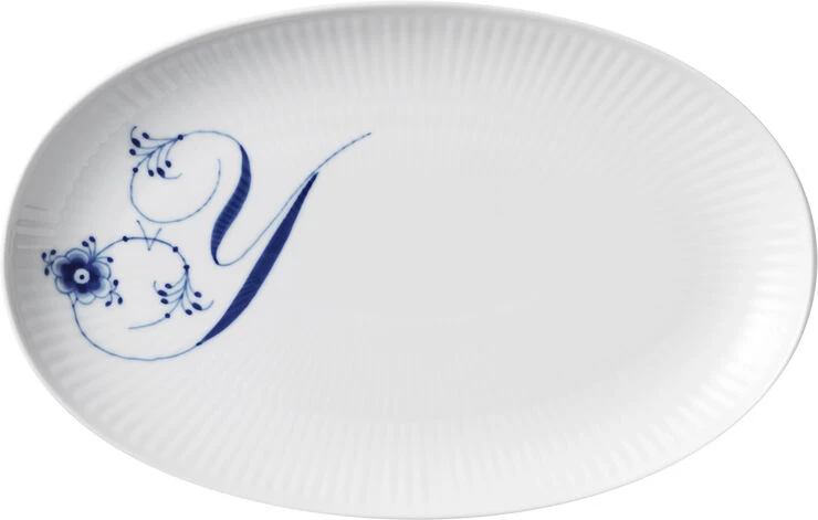 De ovale Alfabet tallerkener er smukke supplementer til Alfabetkrusene og er udsmykket med Alfabetkrusenes mest populære bogstaver. Tallerkenerne er ideelle til morgenmad, desserter eller små snacks. Som en elskelig navnetallerken, der er en ideel gave til en man har kær, fås nu et supplement til de populære Alfabetkrus. Selvom hvert bogstav fremstår naturligt og ubesværet, er det håndmalet på krus og tallerkner med et enkelt, nøje udført penselstrøg, der skaber den smukke tykke linje og den ensartede blå farve. Royal Copenhagens Alfabetkrus og tallerkner giver en klassisk, blåmalet form et strejf af personlighed. Alfabetkrusene og tallerknerne er inspireret af Royal Copenhagens første stel, Musselmalet Riflet fra 1775. • Håndlavet og håndmalet • Unik gaveidé