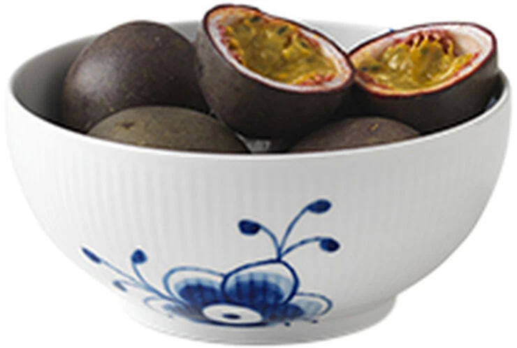 Den unge designstuderende, Karen Kjældgård-Larsen, præsenterede Royal Copenhagen for en dristig idé: En dramatisk nyfortolkning af det klassiske Musselmalede stel. Hendes design bryder alle traditioner samtidig med, at det håndmalede håndværk er bevaret. Forstørrelsen af det klassiske mønster skaber et ekstraordinært og enestående udtryk, hvor det oprindelige mønster stadig er genkendeligt. Musselmalet Riflet er genfødt. Med denne genfødsel har mønstret fra 1775 gennemgået en udvikling, og en moderne klassiker er født. Karen Kjælgaard-Larsens fortolkning af det oprindelige design fra 1775, er blevet en rigtig ny-klassiker.
