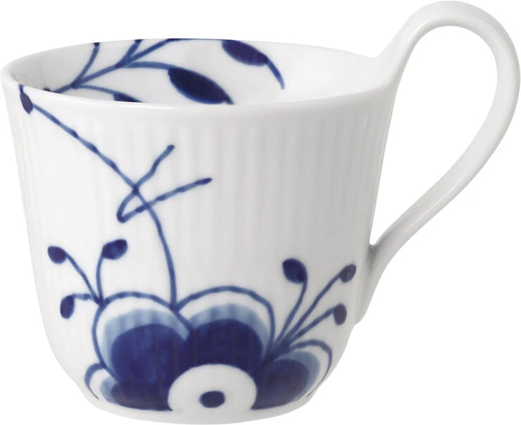 Dette Blå Mega Riflet Højhankskrus i 25 cl er perfekt til mindre kaffedrikke som f.eks. den flat white eller en cortado. De smukke håndmalede dekorationer vikler ubesværet rundt om den hvide porcelæn. En kop, der helt sikkert løfter ethvert øjeblik med din yndlings varme drik.