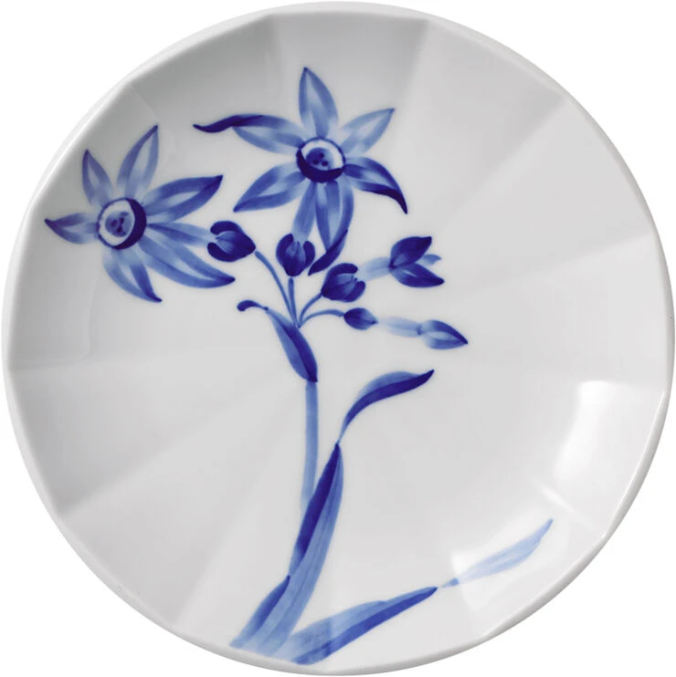 De bedste designs er ofte dem, der ikke ser anstrengte eller komplicerede ud, men derimod lette og tilgængelige. Med blomst-serien har designerne brudt med den mere traditionelle, centralt placerede buketdekoration fra Blå blomst. I stedet er alle elementer hver især prydet med deres egen individuelle, unikke blomst, for at opnå et mere moderne og underspillet udseende. Tallerkenens bløde coupé-form tillader det håndmalede blomstermotiv plads til at gro frit, og lader den klare blå, asymmetrisk-placerede blomst stå i kontrast til den hvide overflade. Uhindret af grænser og ydre kanter synes blomsterne næsten at vokse ind på tallerkenen og fremtræder dynamiske og livlige.