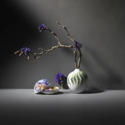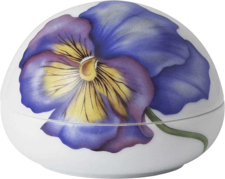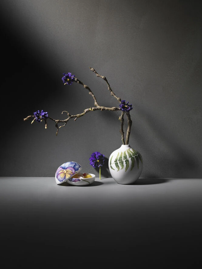 På bonbonnieren inviterer en frodig stedmoderblomst dig til at opbevare dine kæreste ejer under låget, og bregnens bladbesatte stilk pryder Forårskollektionens lille vase. Forårskollektion I år tilføjes et frodigt udvalg af blomster til Royal Copenhagens Forårskollektion. Kvæde, mælkebøtte, iris og tulipan folder deres kronblade ud i dybe nuancer af orange, gul, lilla og blå på de små 6 cm æg og det store 10 cm æg i Forårskollektionen. Hvert år tilføjes nye blomstermotiver, der gør Royal Copenhagens Forårskollektion oplagt som samlerobjekter eller gaveidéer. Den nye Forårskollektion, skabt i 2018, er en frodig genfortolkning af Royal Copenhagens klassiske blomstermotiver. Kollektionen byder foråret velkommen med smukke, individuelle blomster og forstørrede blomsterblade, der luksuriøst draperer sig over æg, bonbonniere og en lille vase. Hvert forår kommer nye blomstermotiver til med intense farver, der inviterer dig til at opdage og påskønne hver blomst helt tæt på.