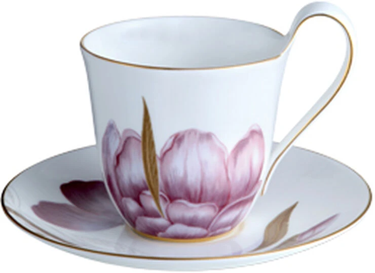 Yderst elegant og blomstret “”Iris”” kop og underkop fra Royal Copenhagens Flora-serie designet af Anja Vang Kragh. 27 ml.