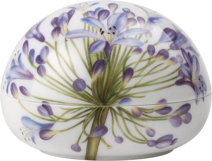 Skærmliljen har store brede græslignende blade, som bliver omkring 40 cm høje. I august begynder den at danne knop på en rund bladløs stængel, som kan blive op til 75100 cm høj. Knoppen svulmer op, åbner sig og viser sig efterhånden som en elegant skærm af blå trompeter.