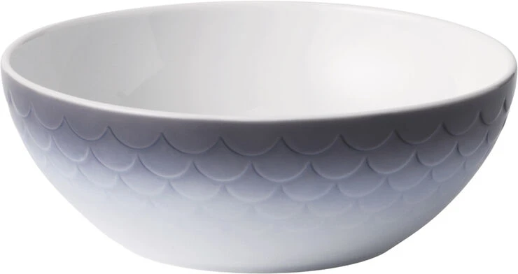HAV-skålene fås i tre størrelser, der er skræddersyet til enhver form for servering eller bespisning. Den taktile skæl-dekoration, der er inspireret af morgentåge ved de danske kyster, er spraymalet på skålene i hånden og skaber et samspil mellem skålenes æstetik og funktionalitet. HAV er et mindre men betydningsfuldt porcelænsstel der præsenterer nye funktionaliteter og former. HAV er smukt sprøjtemalet i hånden og udsmykket med detaljer i bronze. Stellet er nænsomt skræddersyet til at være multifunktionelt – et stel, der er tidløst i både design og funktionalitet. Skabt i 2019 af KiBiSi. • Håndlavet og håndsprøjtemalet • Unik gaveidé • Passer smukt sammen med de andre stel fra Royal Copenhagen