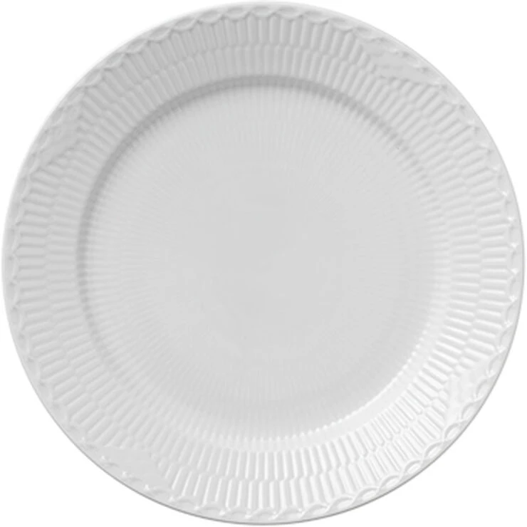 Slutningen af det 19. århundrede var en periode med udvikling og vækst generelt, hvad angår Royal Copenhagens porcelæn. På det tidspunkt redesignede den kunstneriske direktør det Musselmalede mønster og introducerede flere nye tiltag, herunder Hvid Halvblonde. Det Riflede design havde fået tildelt en elegant halvblonde langs kanten for at give stellet et romantisk udtryk. Dekorativt, men simpelt. Hver eneste steldel er glaseret i hånden. Sødt og yndefuldt.