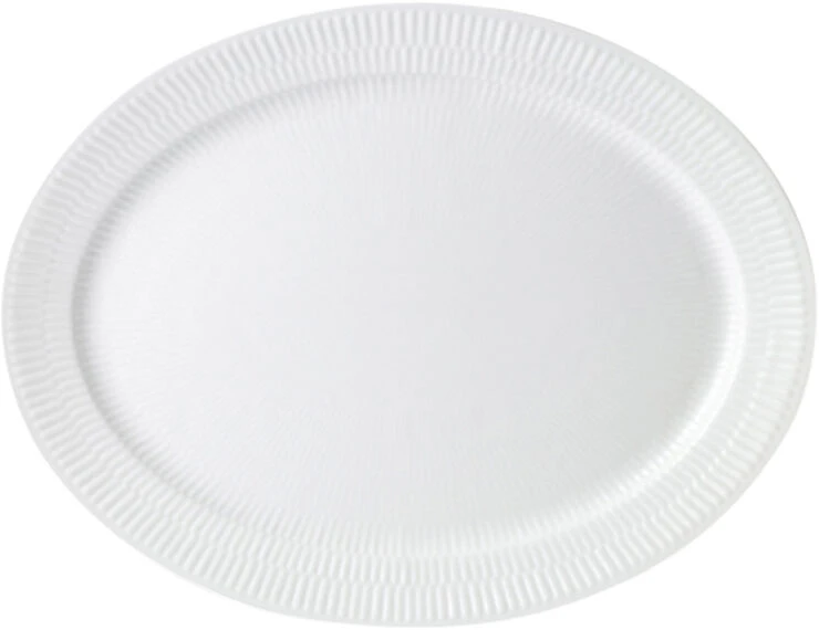 Det hvid riflet spisestel blev designet i d. 19. århundrede. Det er elegant og iøjenfaldende, og gør sig godt, både til hverdag og festlige lejligheder.