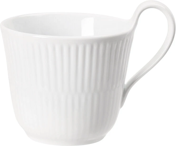 Dette lille Hvid Riflede Højhankskrus er den perfekte tilføjelse til brunch- eller eftermiddagstebordet. Dens hvide overflade er elegant dekoreret af de klassiske rifler, som har været en signatur for Royal Copenhagen siden 1775.