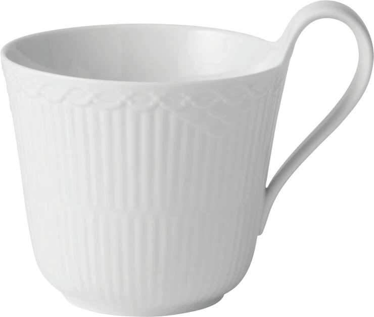 Efter at have været dekoreret med blåt i flere hundrede år, fik man i 1987 øje for stellets skønhed helt i hvidt, og Hvid Halvblonde blev en realitet. Yndigt, men med karakter. Designet i 1888 af Arnold Krog.