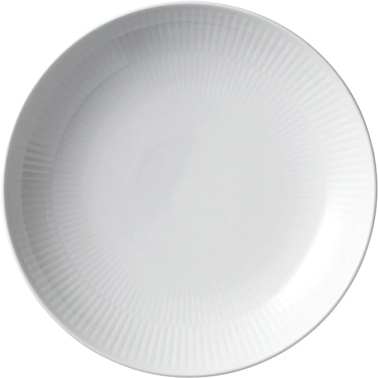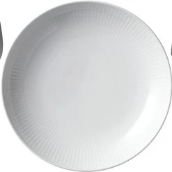 Den nye form på denne Hvid Riflede tallerken er en moderne kombination af en traditionel flad tallerken og en dyb tallerken, og resultatet tilfører modernitet til Hvid Riflet og passer perfekt til stellets elegante udtryk. De nye tallerkner passer perfekt til den moderne, gourmet og Instagram-venlige måde at servere mad på og kan med fordel anvendes til servering af f.eks. salater, asiatiske retter og pasta.