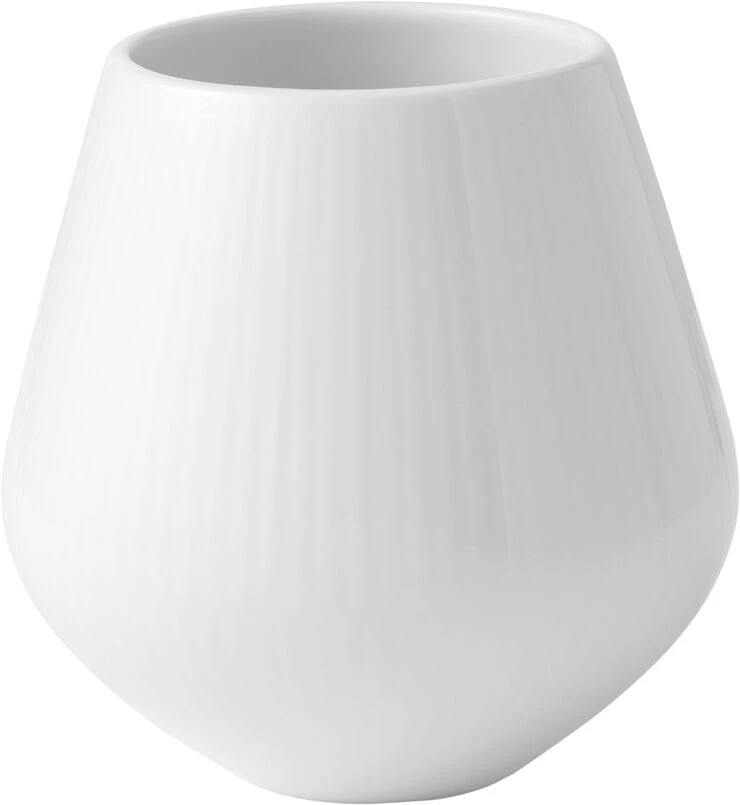 Den elegante vase danner en smuk ramme om enhver blomsterbuket, men er også dekorativ uden blomster. Den populære vase som allerede findes i to større størrelser, lanceres nu i den mindste størrelse i Hvid Riflet. Vasen har samme form som de eksisterende vaser i både Musselmalet Riflet samt Blå Mega Riflet og Sort Mega Riflet, og kan derfor komplimentere hinanden på fineste vis. Vasen har en moderne form, som kombineret med de klassiske rifler og den hvide farve giver et enkelt og elegant udtryk