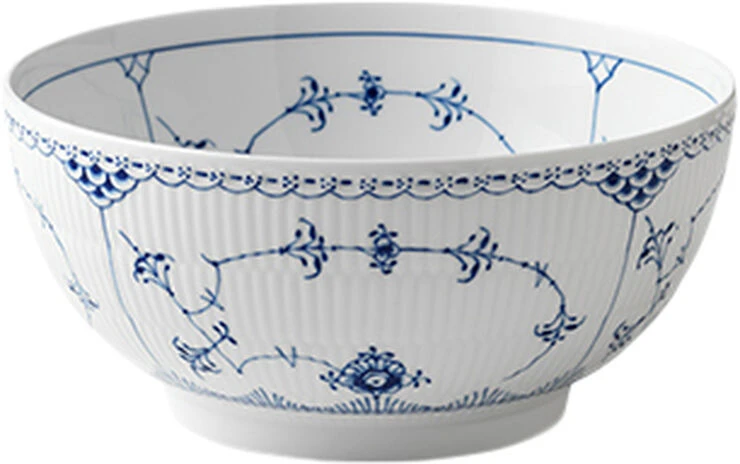 Godt 100 år efter, at det musselmalede var kommet til verden, blev mønstret smukt indrammet i blonder. Arnold Krog, som havde sans for detaljer, designede tillige de charmerende sneglehuse, der blandt andet pryder låg og hanke.