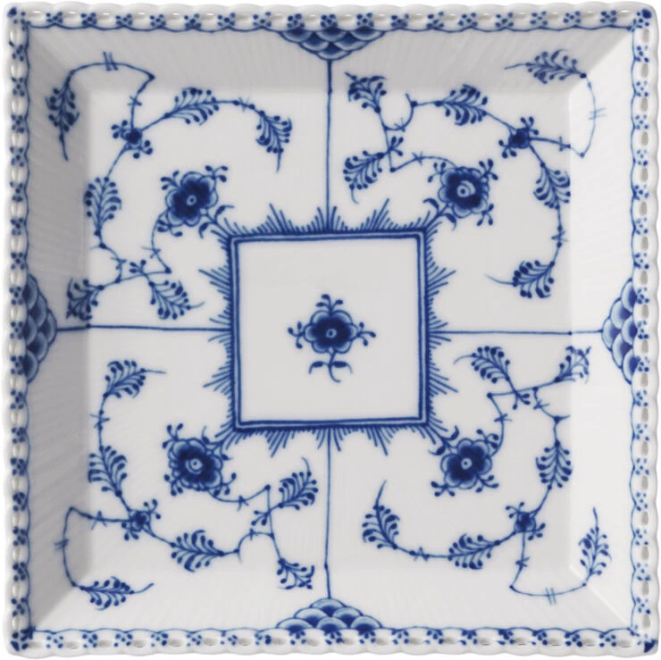 Med sit skarpe udtryk og sine delikate blonder, tilfører den lille firkantede tallerken et moderne touch til Musselmalet Helblonde. Tallerkenen er alsidig og er oplagt til alt fra mindre serveringer, som asiet eller til smuk opbevaring af eksempelvis smykker. Tallerkenen findes også i 21 cm.