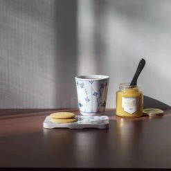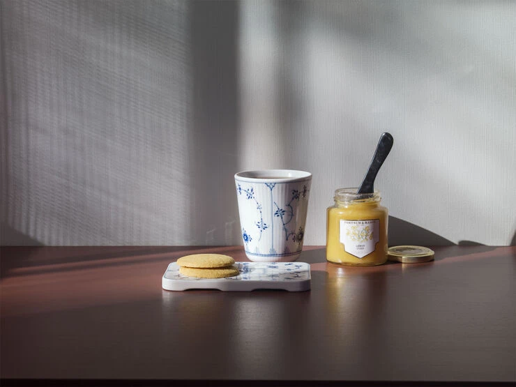 Som det første stel fra Royal Copenhagen bærer Musselmalet Riflet på en arv fyldt med skatte, der venter på at blive genfortolket og genintroduceret. Til foråret vender et smukt bræt, baseret på en smørbrik fra 1911, tilbage til Musselmalet Riflet. Ud over at blive brugt som smørbrik kan det nye bræt ydermere fungere som en smuk bordskåner eller til små serveringer, en smuk tilføjelse til enhver Royal Copenhagen samling. • Håndlavet og håndmalet • En samling for livet • Tåler maskinopvask • Brudgaranti