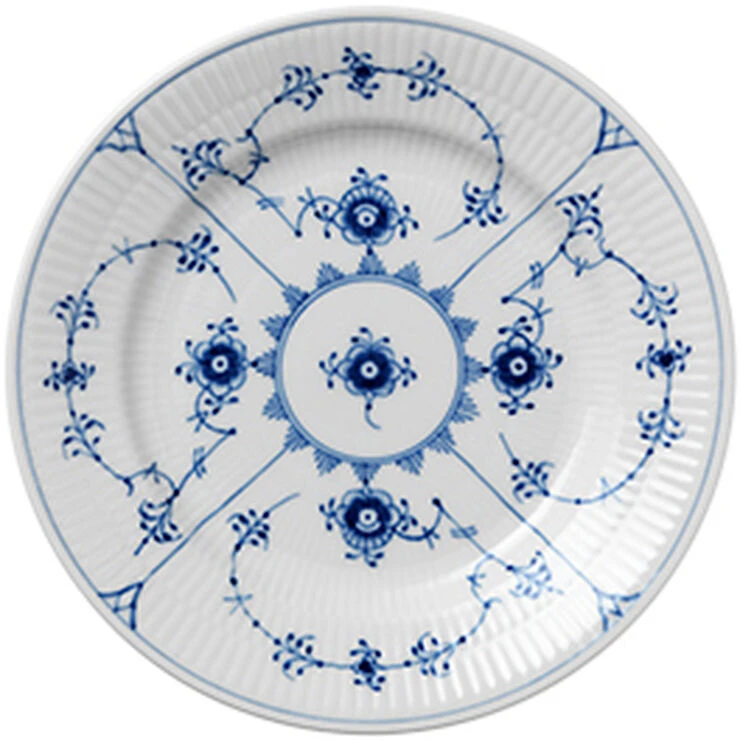 Musselmalet Riflet fascinerer med sin klassiske alsidighed. Den yndefulde dekoration fremhæver de delikate former og det fine håndværk, der ligger bag hver steldel. Musselmalet Riflet er et tidløst stel.