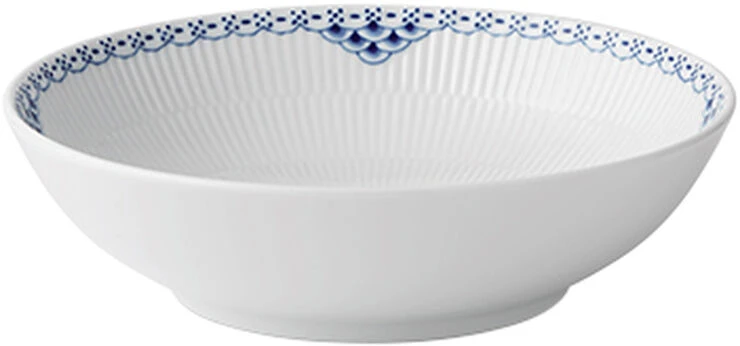 En klassiker fra det 19. århundrede, der er som skabt til vores tid. Kniplingeborten og de blå musseldekorationer på Prinsesse-stellet afslører dets tætte bånd til Royal Copenhagens musselmalede stel. Og det var faktisk også det, der i det 19. århundrede inspirerede Arnold Krog da han designede denne royale, klassiske serie af håndglaserede og håndmalede stel i en mesterlig, traditionel stil.