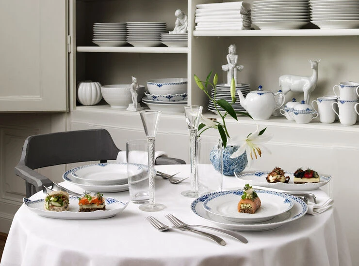 En klassiker fra det 19. århundrede, der er som skabt til vores tid. Kniplingeborten og de blå musseldekorationer på Prinsesse-stellet afslører dets tætte bånd til Royal Copenhagens musselmalede stel. Og det var faktisk også det, der i det 19. århundrede inspirerede Arnold Krog da han designede denne royale, klassiske serie af håndglaserede og håndmalede stel i en mesterlig, traditionel stil.