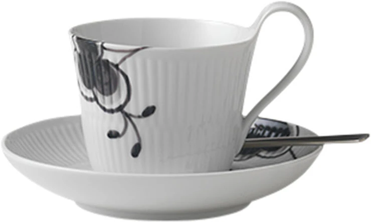 Her er stellet, der er mere end porcelæn! Det er beviset på, at selv de bedste traditioner kan holde til at blive udfordret. Det, der engang var kendt som småt og blåt, er nu også eftertragtet som stort og sort. Et samleobjekt for designelskere. Sort Mega Riflet bryder med det traditionelle blå og hvide univers, og de sorte penselstrøg på det hvide porcelæn skaber et skarpt, kontrastfyldt udtryk, der matcher moderne hjem. Sofistikeret, gennemtænkt og en lille smule rebelsk.