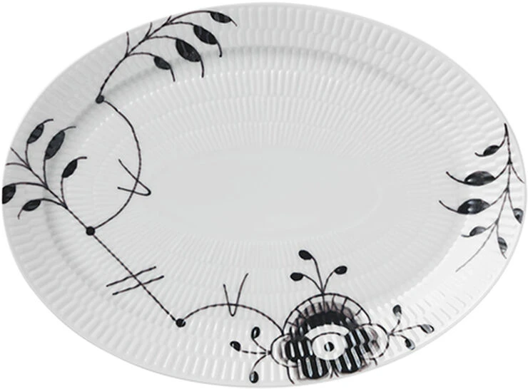 Her er stellet, der er mere end porcelæn! Det er beviset på, at selv de bedste traditioner kan holde til at blive udfordret. Det, der engang var kendt som småt og blåt, er nu også eftertragtet som stort og sort. Et samleobjekt for designelskere. Sort Mega Riflet bryder med det traditionelle blå og hvide univers, og de sorte penselstrøg på det hvide porcelæn skaber et skarpt, kontrastfyldt udtryk, der matcher moderne hjem. Sofistikeret, gennemtænkt og en lille smule rebelsk.