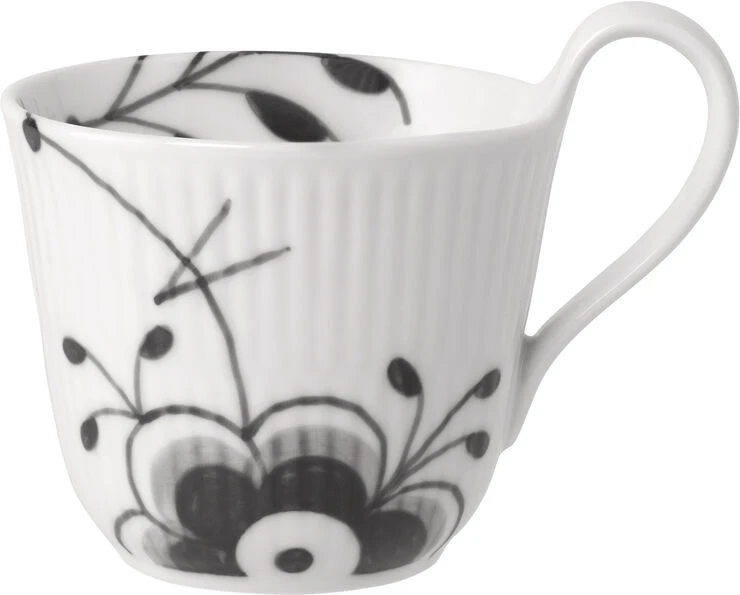 Nyd din yndlings varme drik i dette elegante Sort Mega Riflet Højhankskrus. Koppen er smukt håndmalet, og kruset med den høje hank er et ægte Royal Copenhagen-ikon.