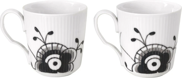 Et gammelt design er blevet nyfortolket i dette 28 cl krus fra Sort Mega Riflet. De håndmalede dekorationer viser smukt de kongelige københavnske håndværkeres ekspertise med de forstørrede elementer fra det klassiske musselmalede mønster. Krusene fra Sort Mega Riflet er ideelle til dem, som elsker en monokrom sort og hvid æstetik. Lad dem være det naturlige valg til din morgenkaffe eller eftermiddagste – eller skab særlige minder for to.